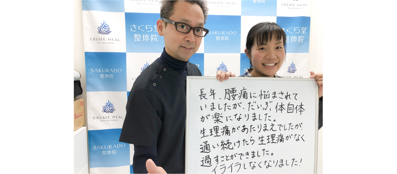 生理痛があるのが当たり前でしたが、続けて通ううちに痛みがほとんどなくなり、快適に過ごせるようになりました。イライラすることも減って、本当に嬉しいです!